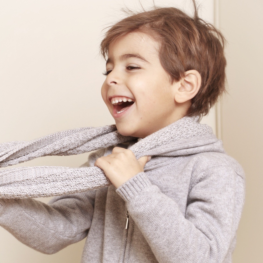 Gilet en cachemire à capuche avec fermeture éclair, alliant douceur, chaleur et élégance pour accompagner bébé tout au long de la saison.