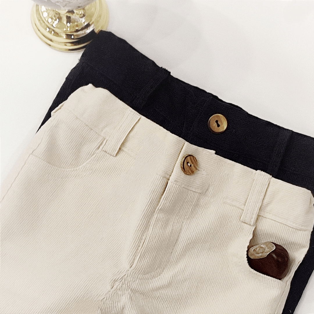 Offrez à votre enfant le parfait compromis entre confort, chaleur et élégance avec nos pantalons en velours de coton, doux au toucher et agréables à porter tout au long de la journée. Déclinés dans une palette de teintes naturelles — écru, beige, marron et marine — ils s’associent facilement à toutes les tenues, des plus décontractées aux plus habillées. Leur coupe soignée et leur finition délicate en font une pièce aussi pratique que raffinée, idéale pour affronter les journées fraîches avec style. Que ce soit pour une sortie en famille, une fête ou un moment du quotidien, ces pantalons apportent une touche luxueuse et intemporelle au vestiaire des tout-petits.
